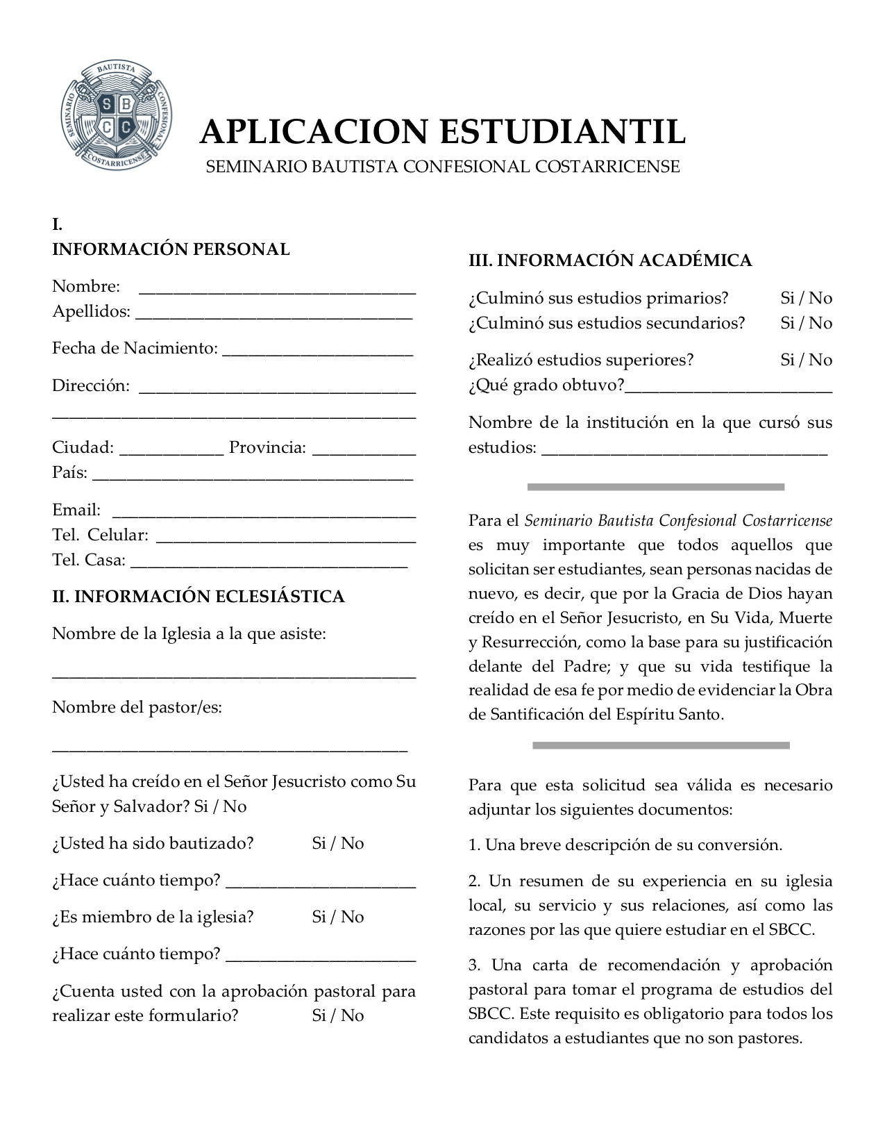 Si desea aplicar al SBCC puede escribirnos a admisiones@sbcc1689.org